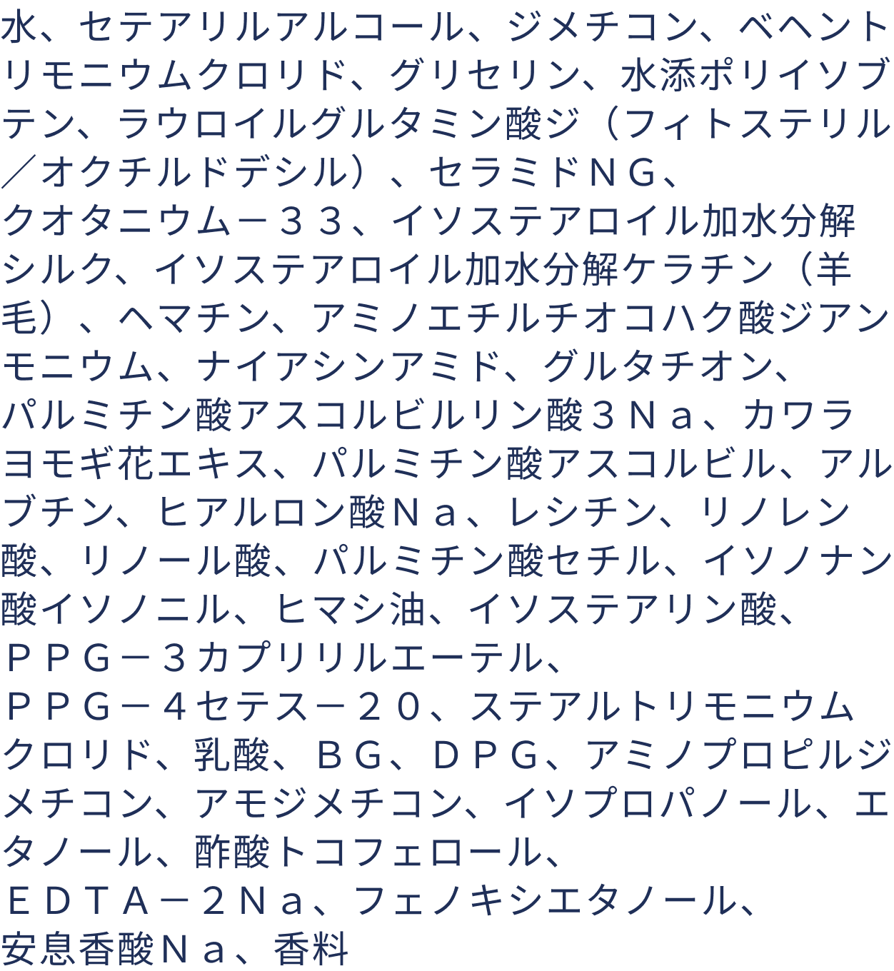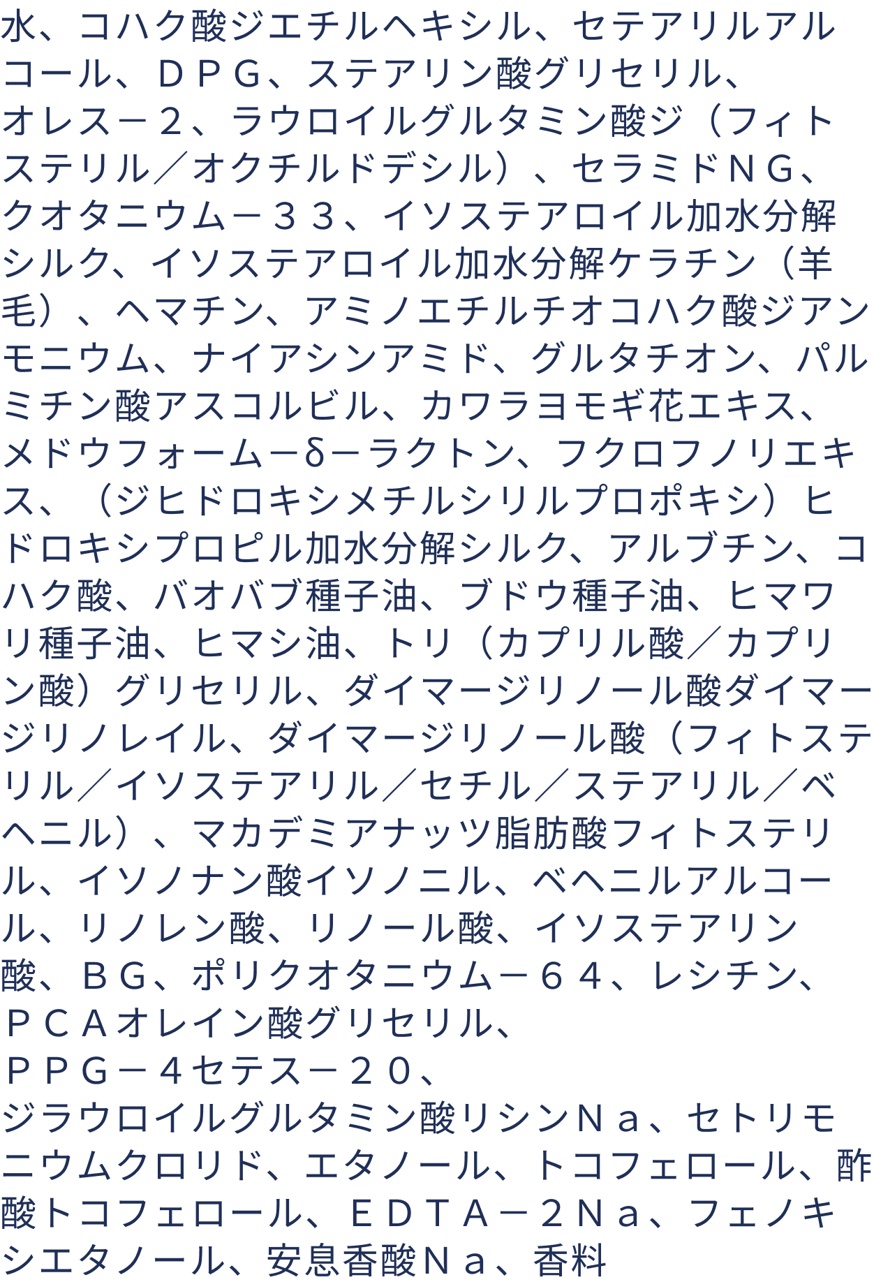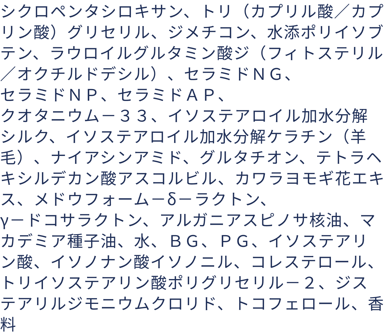 CMC類似成分は「ラウロイルグルタミン酸ジ(フィトステリル/オクチルドデシル)」と「セラミドNG」をそれぞれエモリエント成分として配合しています。