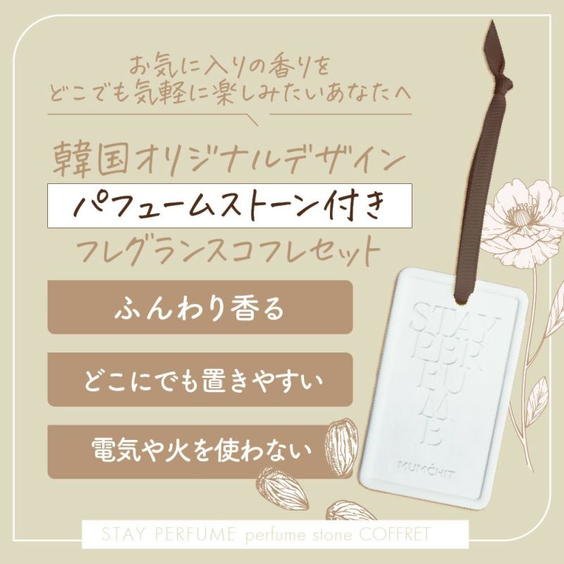 香りを直接吹きかけて、ストーンから広がる香りを楽しんで。 ステイパフュームのロゴがあしらわれたシンプルなデザインでオシャレ お部屋のインテリアにもぴったり。