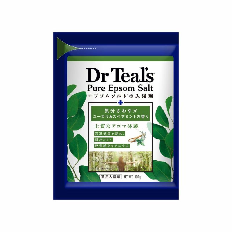 100%ナチュラルなミネラル成分エプソムソルト(硫酸マグネシウム)に エッセンシャルオイルをプラス。 エプソムソルト(有効成分:硫酸マグネシウム)配合。ユーカリとスペアミントのハーブの香りで気分爽快なバスタイム。 おやすみ前のリラックスタイムに。温浴効果で疲労回復等を促します。 浴槽のお湯(200L)に本品100gを入れ、よくかき混ぜながら溶かして入浴してください。 お好みにより適宜量を調整してください。